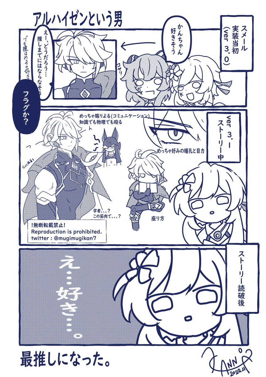 #原神 #Genshinlmpact #原神実録 #漫画 #絵描きさんと繫がりたい ※再掲 代理キャラ注意。 フレンドの予言通りどっぷりハイゼンにはまりました。 3.1のストーリーで完全に堕ちました。 これから3.2のストーリー進めますが、pixivでネタバレも踏んでしまったのでもう何も怖くありません。