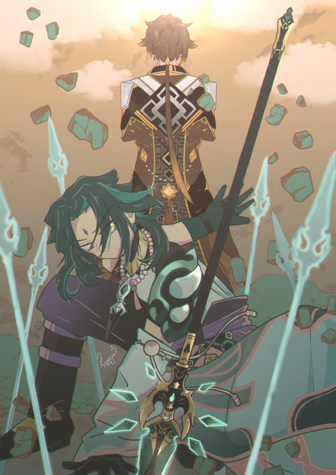 #原神 #Genshinlmpact #絵描きさんと繫がりたい #デジタルイラスト #イラスト企画 #魈 #鍾離 再掲 前回のアンケートは陰謀でこの二人になってしまいましたので頑張りましたよ。 頑張ったころは魈君の鋭い目と鍾離先生の背中。 twitter.com/mugimugikan7/s…