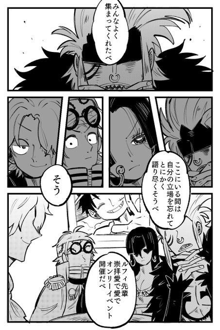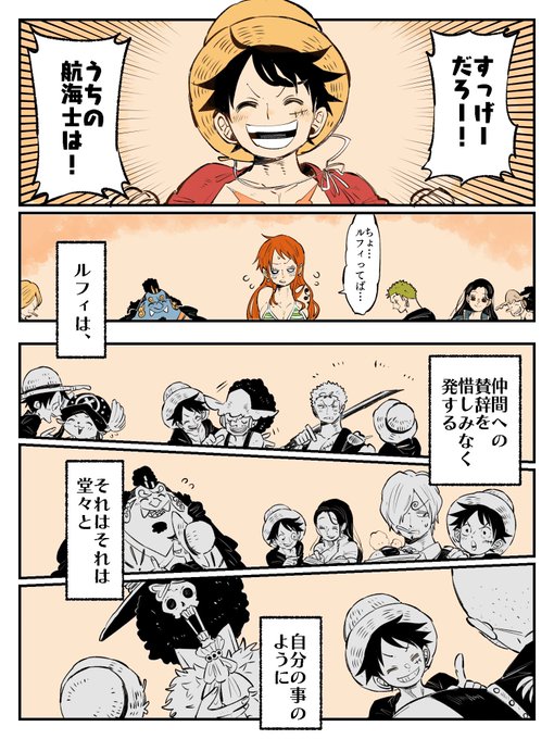 653 3313 船長おめでとう🍖👒🎂🎉🎊 本人の居ない場で一味クルーが船長の話してるって空間がとても好き漫画(1/2) #ルフィ生誕祭 #ルフィ誕生祭 21/05/05 00:00