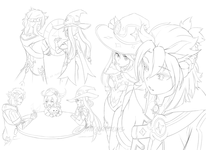 lineart done for the the /only/ ship i will sail <3 #Genshin_Impact #GenshinImpact #genshinimpactfanart #原神 #Albedo #Mona #Klee