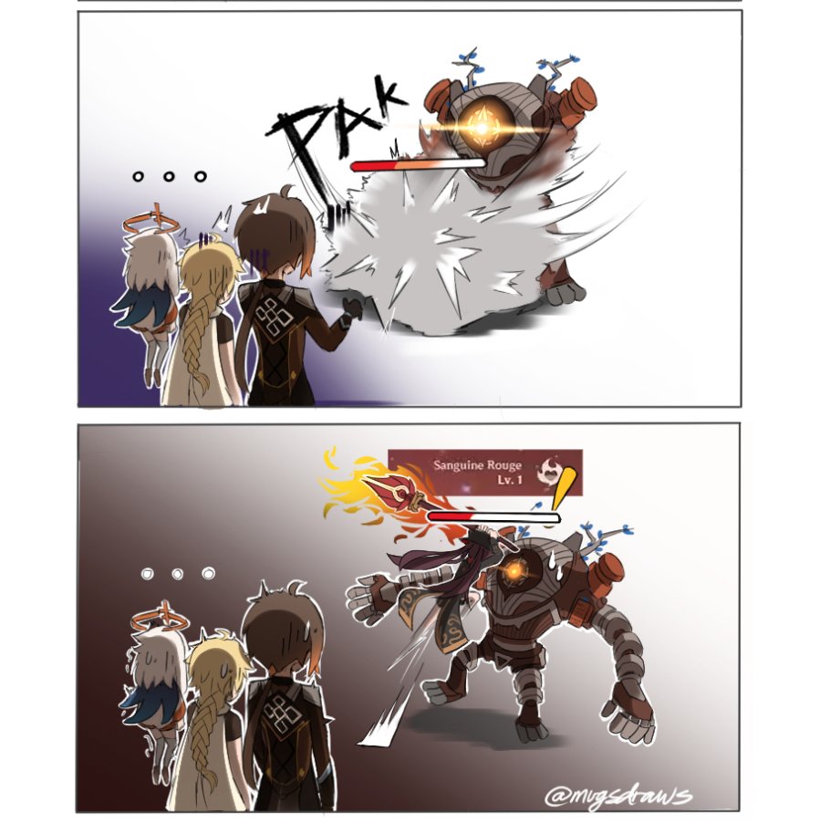 hilichurl fire-breathing for some reason i keep waking them up so i end up being attacked while im talking to the npc #genshinimpactfanart #Genshin_Impact #LUMINE #genshintwt #GenshinImapct #GenshinImpactmeme