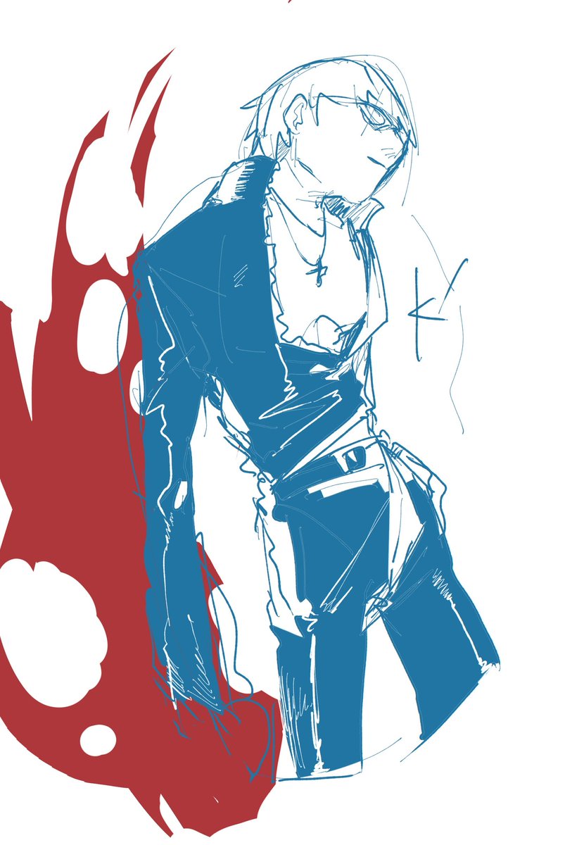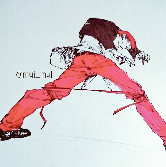 #草薙京生誕祭2020 #KOF クルクル回ってる技が格好良くて好き!朧車とか!足が長い!!内から外に払って炎出す動作が絵になる!!描けない!!二重で眉太めの正統派イケメンのイメージ!!!描けない!