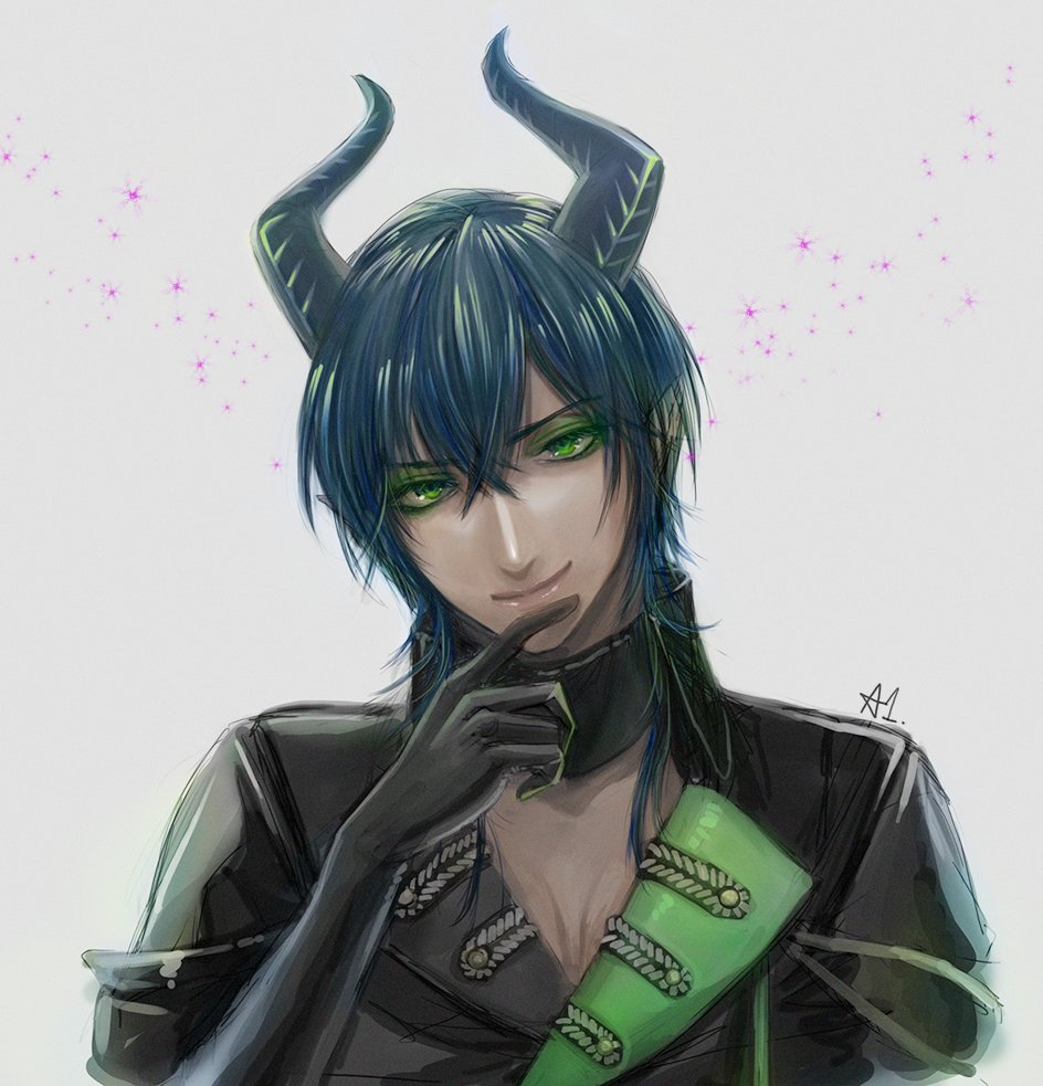 人の子の魂を視て美味しそうだなぁ欲しいなぁってよだれ垂らすツノタロさん #twstファンアート #マレウス