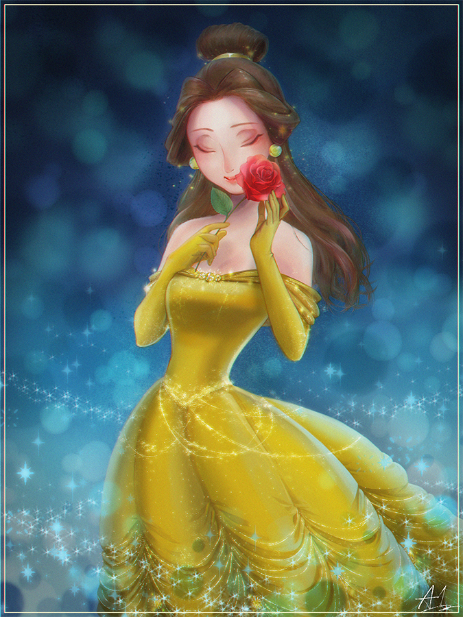グリッターブラシ楽しくてキラキラさせすぎたベル ディズニープリンセスの中でオーロラと並んでトップで好き #イラスト #美女と野獣 #Disney #fanart
