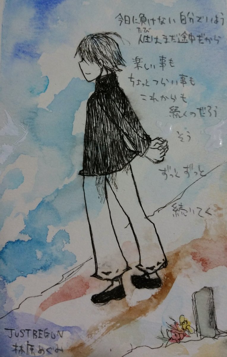 「ただいま」 とりあえず、華太は大丈夫そう。城戸さんと須永の兄貴の闘いの行方が気になるし見たくない気もする。有事の際に誰が何を担当しているのか見てみるのも楽しい。小林の兄貴は実は頭脳派だし、須永の兄貴も考える側。和中の兄貴はひたすら戦闘、みたいに(^-^) #バグ大アート科 #イラスト
