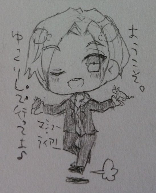 柳楽の兄貴に時間遅れてると言われて鮫洲の兄貴に怒られてる阿蒜君萌え。後鮫洲の兄貴の「洲」の字間違えた...。来栖さんは相変わらず強いし、飴がバッチリ技に含まれててにこにこする。柳楽の兄貴の「若い奴は斬れない」は大変な弱点かと;黒澤さんが知ってるのがまた。 #バグ大アート #イラスト