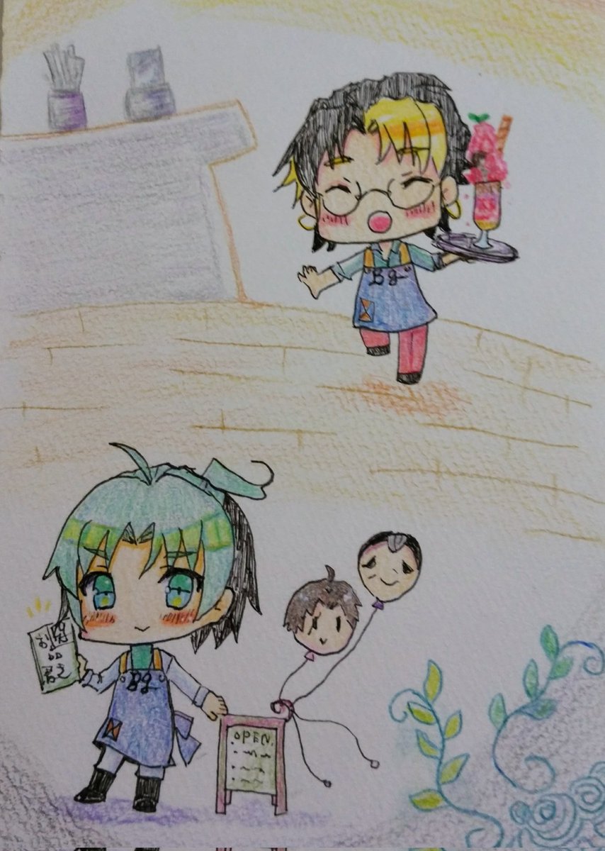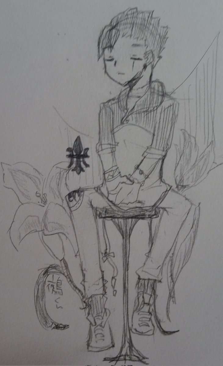 鵺君が描きたくなって。まだ中学生位をイメージ。 2枚目は最近で和中の兄貴と使用している“紅”が同じ事を知ったと言う感じで。 うん。両方妄想だけども(^_^; #バグ大アート科 #バグ大プラス #イラスト