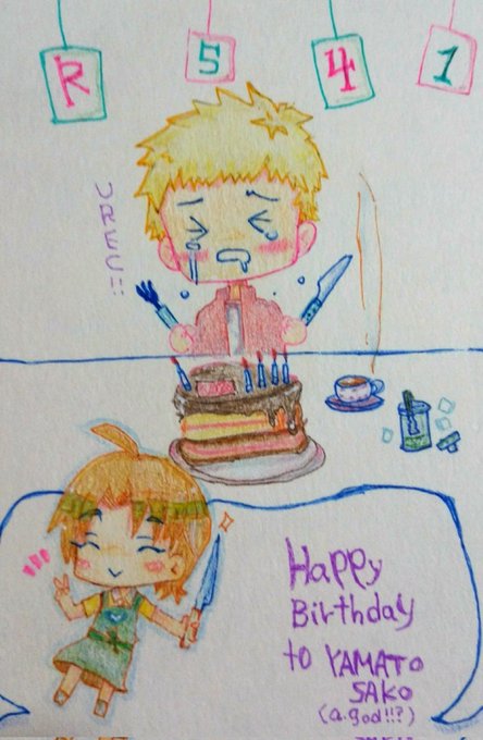 3 21 佐古君誕生日おめでとう! いびつなカタチのケーキでも。 作ってくれたあなたの心が こもっているから、 それはもう! 美味いんだぜ!! #バグ大アート科 #佐古大和誕生祭2023 #イラスト 23/04/01 19:37