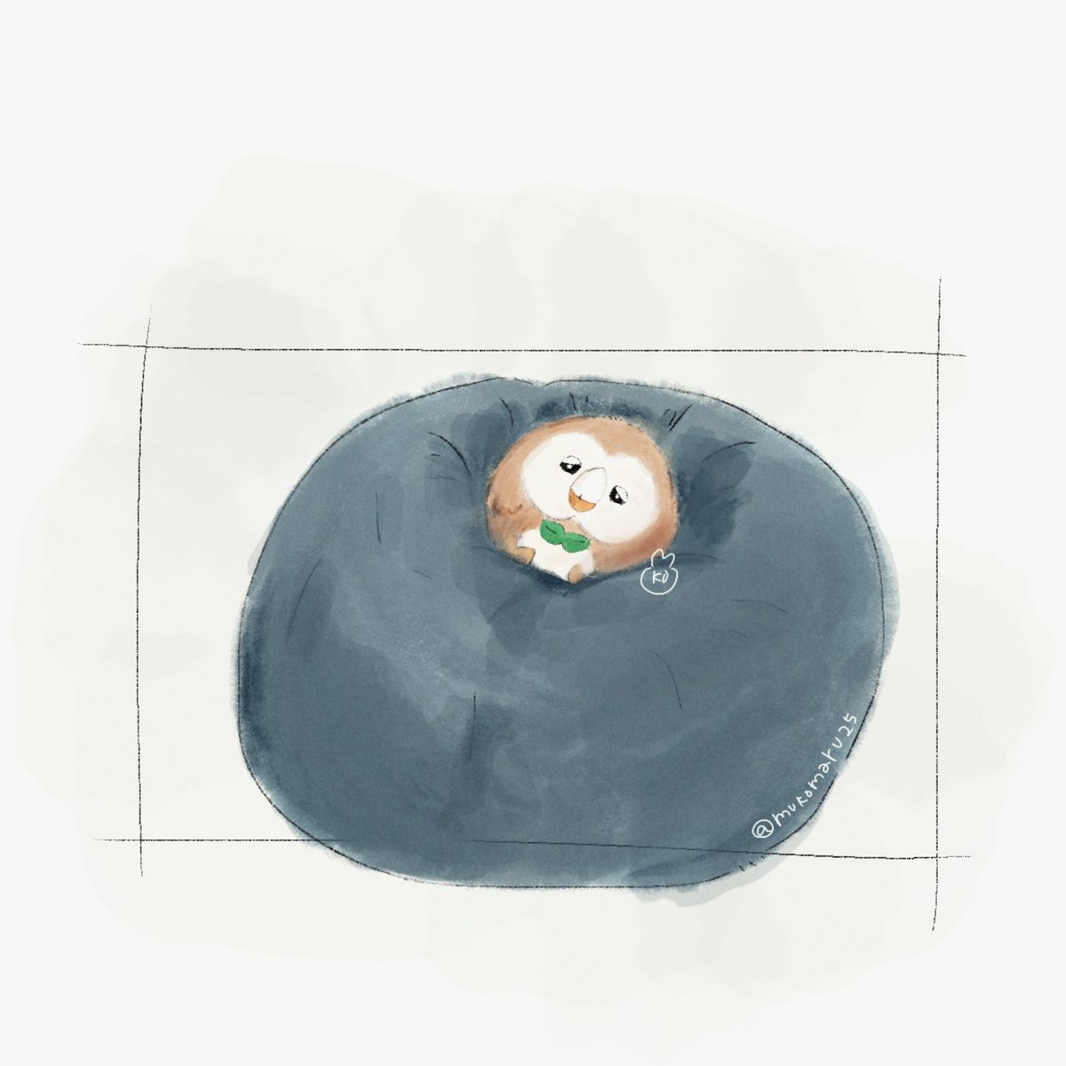 モクローをダメにするソファ #ポケモンイラスト #ポケモンファンアート #ポケモンと生活 #モクロー