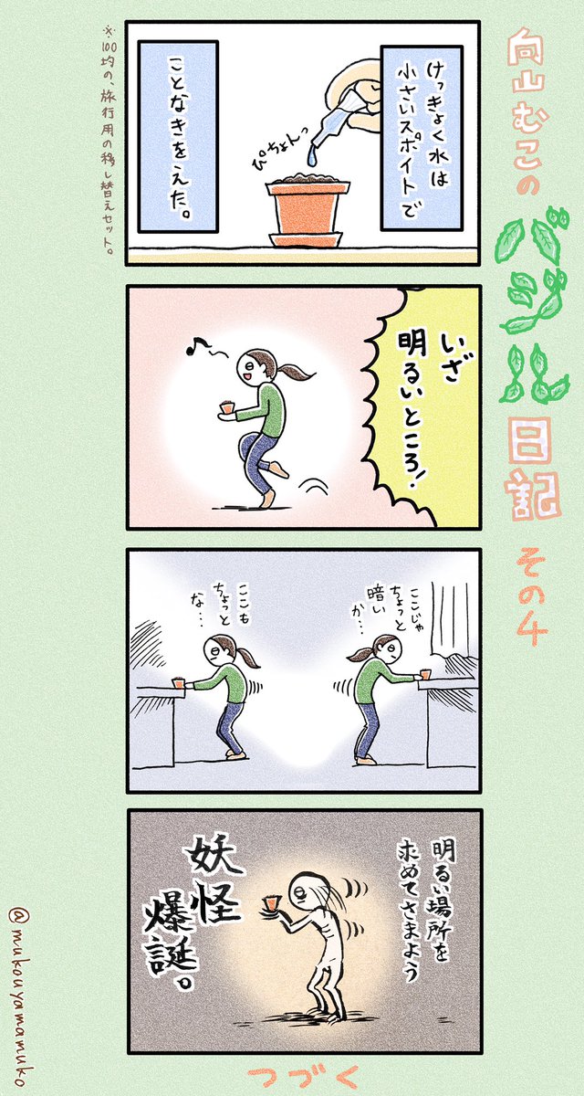 スイートバジル育成日記その4 今度は明るい場所を探して四苦八苦…。 #育てるハーブ #バジル #絵日記 #4コマ #漫画が読めるハッシュタグ #絵描きさんと繋がりたい #イラスト好きな人と繋がりたい #向山むこのバジル育成日記