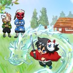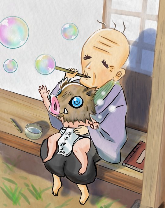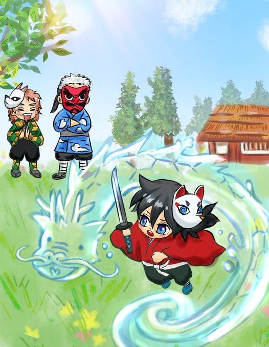🍉くん、おめでとう🎂🎈🎉 🍉と言えば、コレしか浮かばなくて描いちゃった🤭 ⚠️サ〇エさんとの🌈コラボ 果物と🐱とお顔パーツは模i写。 ~尊敬するお2人と共に🎵~ #不死川玄弥誕生祭2023 #不死川玄弥生誕祭2023