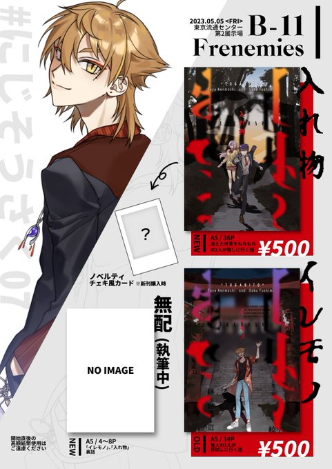 2023/5/5開催『 #にじそうさく07 』お品書き 【B-11】Frenemies お一人様各3部までとさせて頂きます 既刊は少部数となりますのでご注意ください 新刊、既刊共に通販予定です 相互さんのみ取り置きを受け付けております ▼取り置きフォーム docs.google.com/forms/d/e/1FAI…