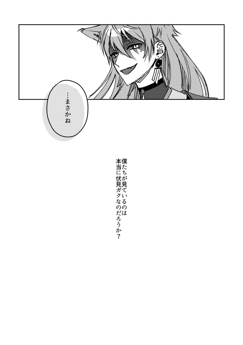 2023/5/5開催『 #にじそうさく07 』新刊サンプル 『入れ物』 A5 / 36P / 500円 ※CP要素無 ※にじそうさく06で出した『イレモノ』の続編になります 部数アンケートにご協力ください docs.google.com/forms/d/e/1FAI… 消えた伏i見をもiちiもiちの2人が探しに行く話 1/2