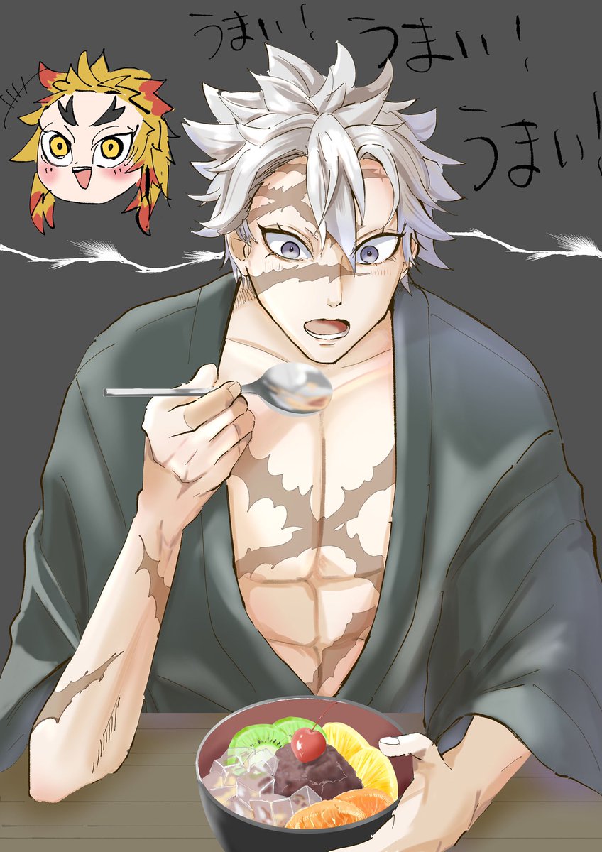 以前夢にみた初めてあんみつを食べる不死川さんらくがきしました。 かわいいですネ。 #気滅の刃 #鬼滅の刃絵描きさんと繋がりたい #不死川実弥 #鬼滅の刃イラスト