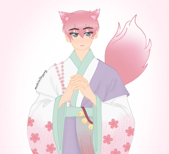 Sakura Fox Spirit Kihyun 🌸 and Lucky Cat Spirit Changkyun 🍀 #monstaxfanart #Kihyun #Changkyun #monstax