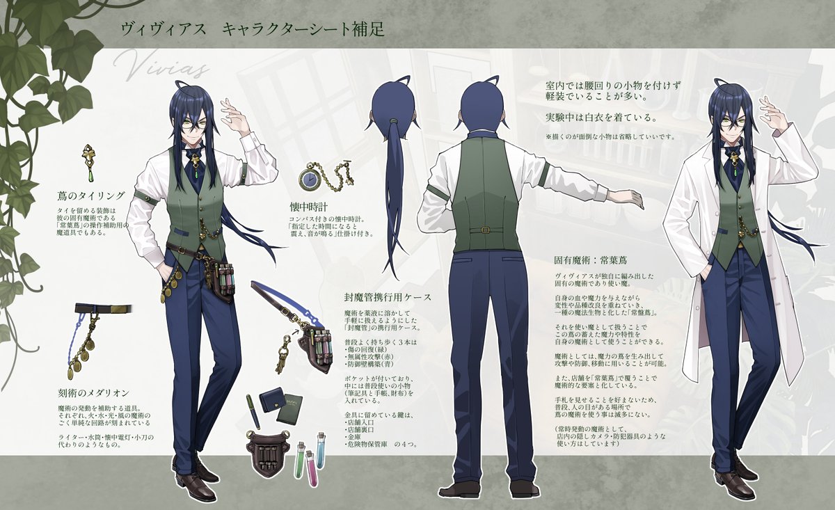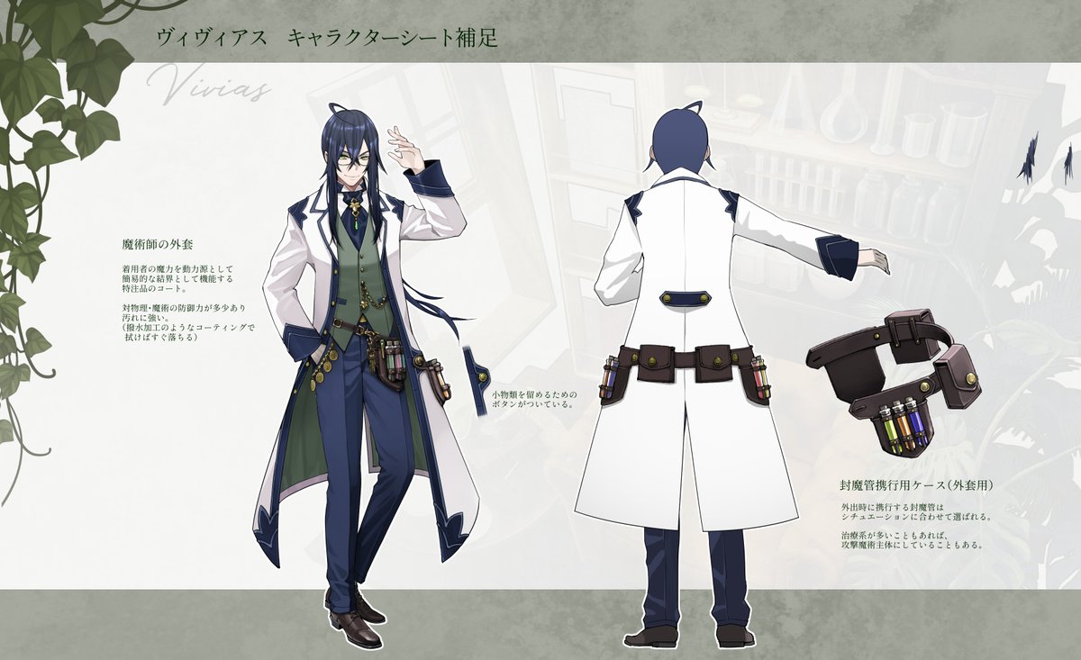 元々のキャラシはこちら。なお期間中から今に至るまでコート着せてないし腰回りの装備も描いてない。作画コスト省略の犠牲となったのだ…。 【PFSOZ】常葉蔦のヴィヴィアス | sachi #pixiv pixiv.net/artworks/10232…