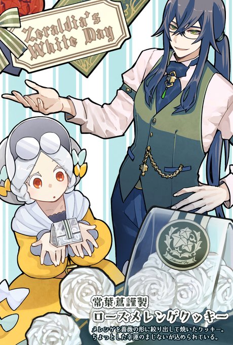 大変遅くなりましたがルアルさんにバレンタインデーのお返しです! 多分企画内時空で渡してるので描きました。 アラザンを散らした可愛いメレンゲクッキーです。常葉蔦の菓子系アイテムは女子力が高いと評判…かもしれない(おおむね中の人の趣味です) twitter.com/kuzira_punpun/…