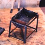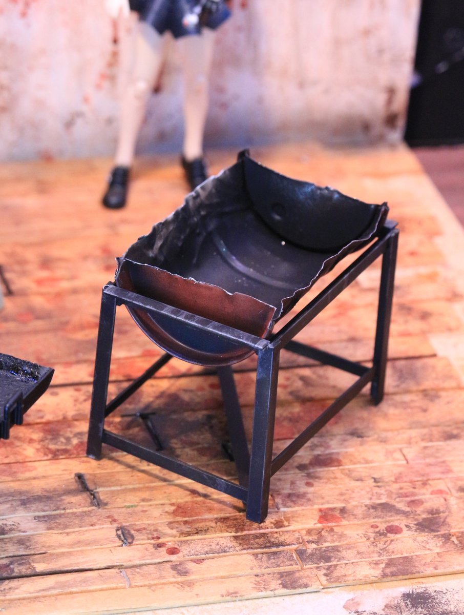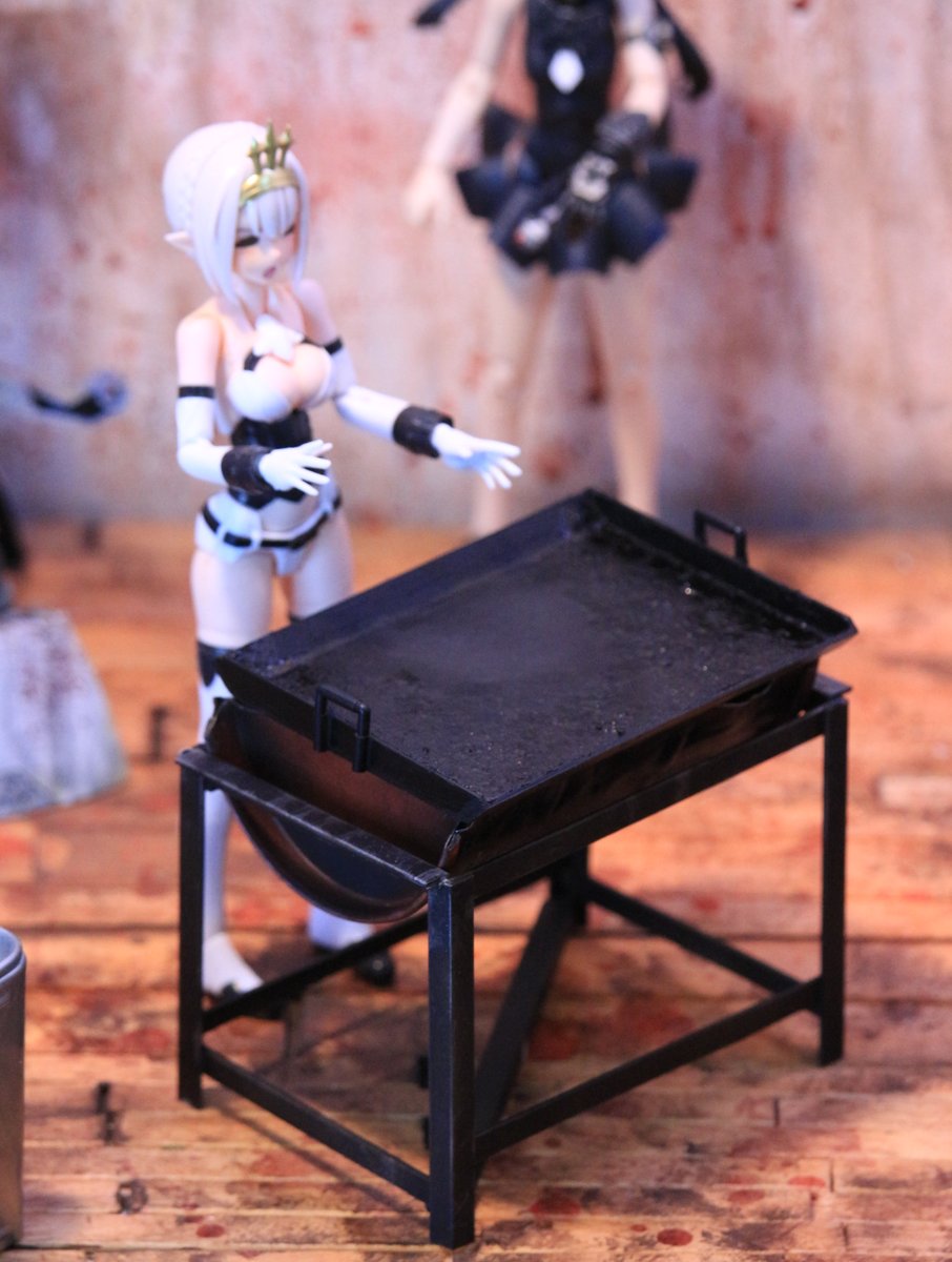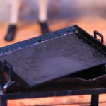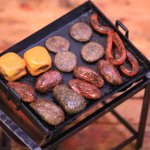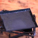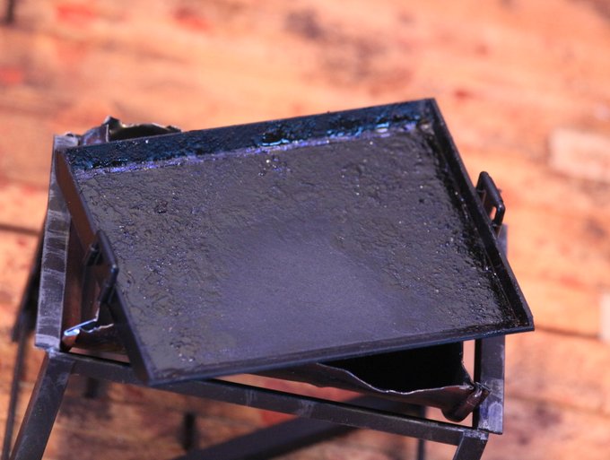 鉄板とコンロ作りました。 焦げがこびりついて積層している鉄板ですよ。 今年作ったものの中で一番の出来ではないかと自負しておりますよ。 この上で焼くお肉はいま制作中です。