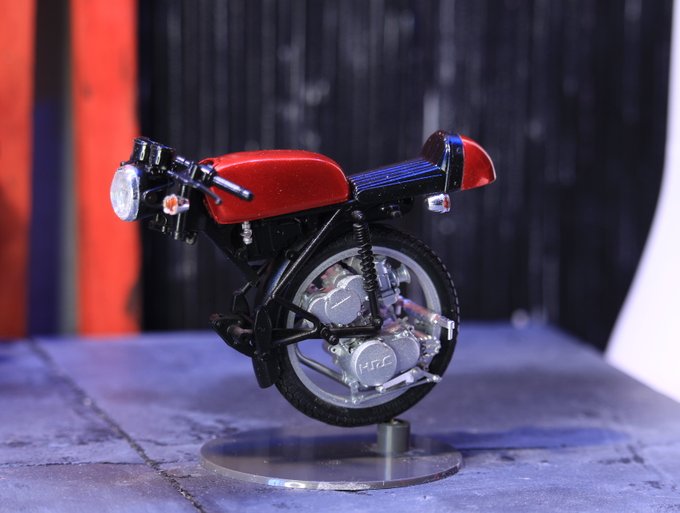 24 93 単輪車つくりました。 ハセガワのドリーム50をチョップしてつくりました。 車輪のなかにエンジンを収めたかったのです。 23/06/03 14:36