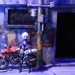 ストリートな路地裏つくりました。 電信柱で余ったシールをアルミ板に貼って看板のようにしてみました、かっこいい。 以前つくった電信柱をおいてみましたがやっぱりでかいですね。