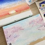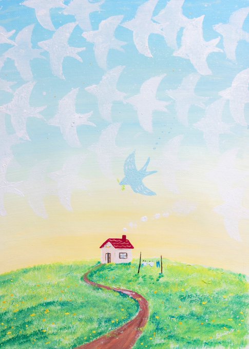 #今までで作画カロリーMAXの作品上げようぜ 描き込み少ないこれが???と思うかもしれないけど 天の川の表現、空のグラデーションに1ヶ月くらいかけました。おかげさまでアクリルガッシュなのに「油彩?」って訊かれるくらい厚塗りしてます。手先の迷いが多い