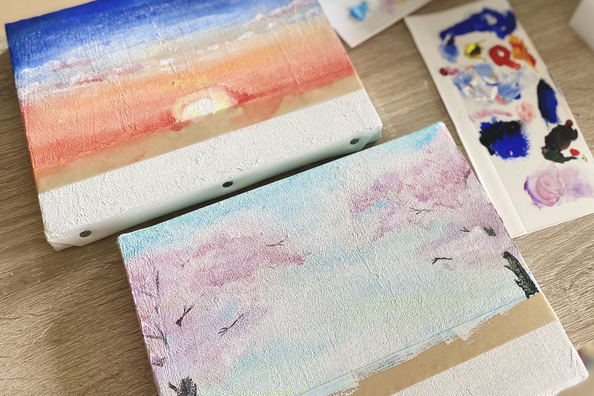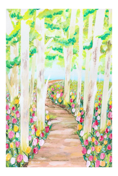#ゴールデンウィークSNS展覧会2023 5月ですね。 新緑とお花畑の季節です ------------------------------ 〈春小径〉 A4/アクリルガッシュ・セラミックスタッコ #アクリル画