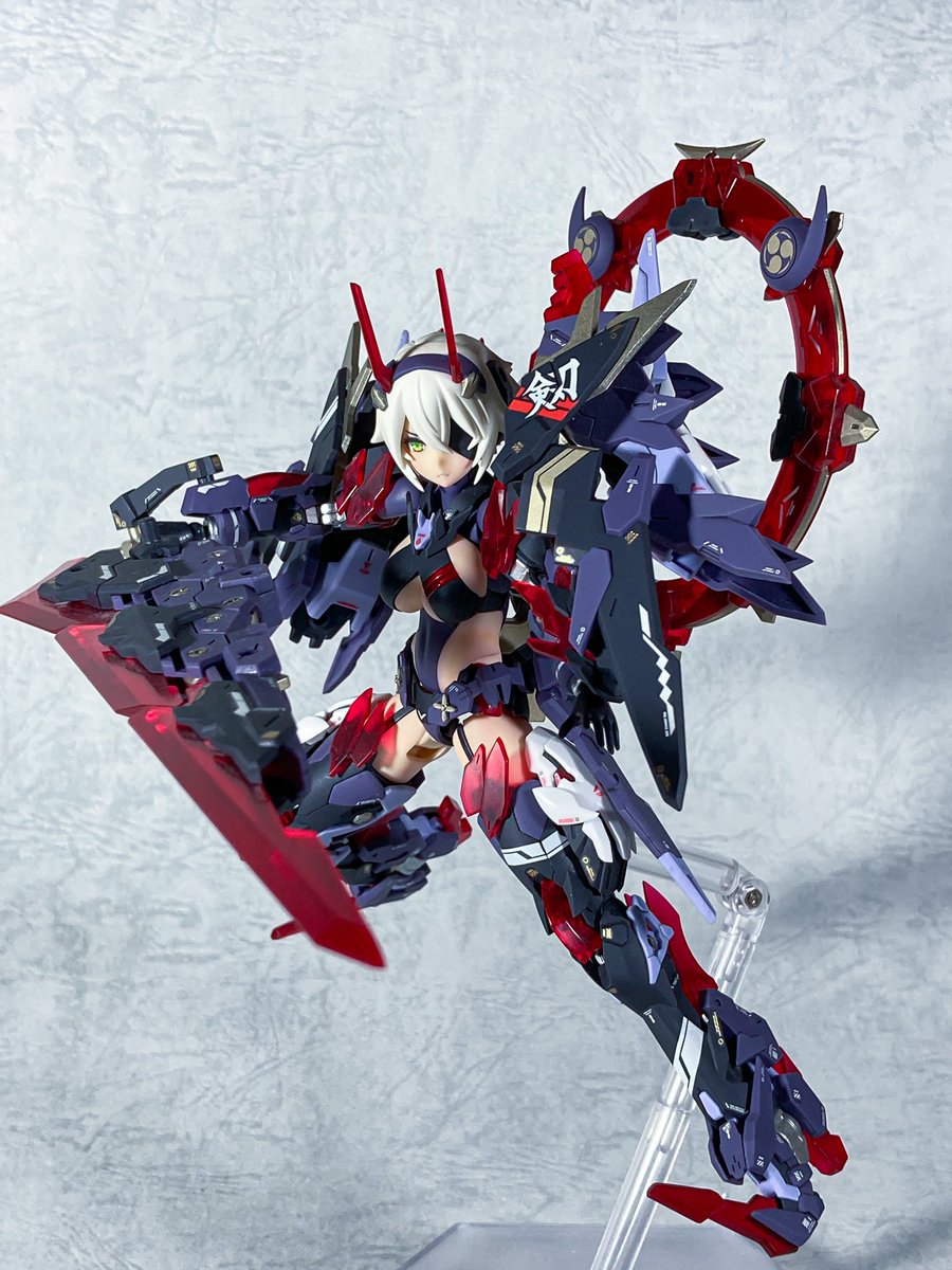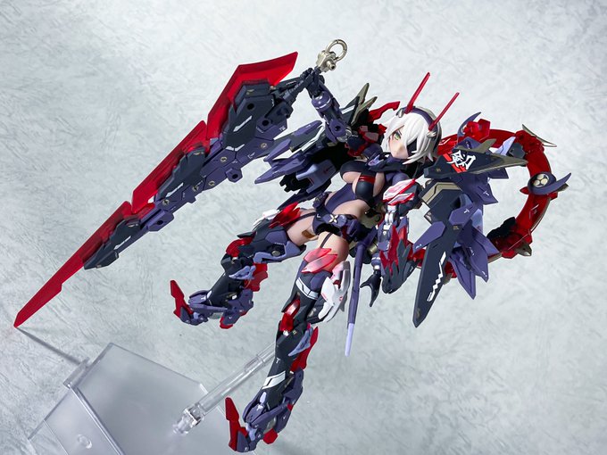 ※再投稿 #第4回美少女プラモコンテスト #おおやさんの模型チャンネル #事前エントリー表明済 作品名:皇巫 スサノヲ【覇竜】 所属チーム:K メガミデバイス初全塗装&初ミキシング作品です! 皇巫 スサノヲの強化型をイメージして元のデザインを活かしたミキシングをしました!