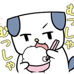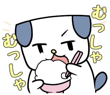 LINEスタンプのうちの1つのイラスト ご飯食べてるもと犬。 #フォローお願いします #ゆるいイラスト #イヌ #1日1絵 #絵描き #絵柄が好みって人にフォローされたい #みんなで楽しむTwitter展覧会