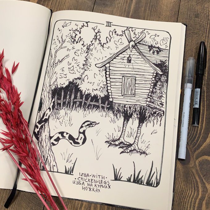 #russianwitches_inktober #inktober2020 #inktober day 3 - izba with chicken legs 🐓 day 4 - lichen 🍃