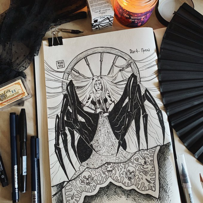 day 4 - weavess 🕷️ (день 4 - пряха) #slavicwitches_inktober #russianwitches_inktober #inktober #inktober2022 #inktoberday4 #ink #spider #myphology #traditionalart #art