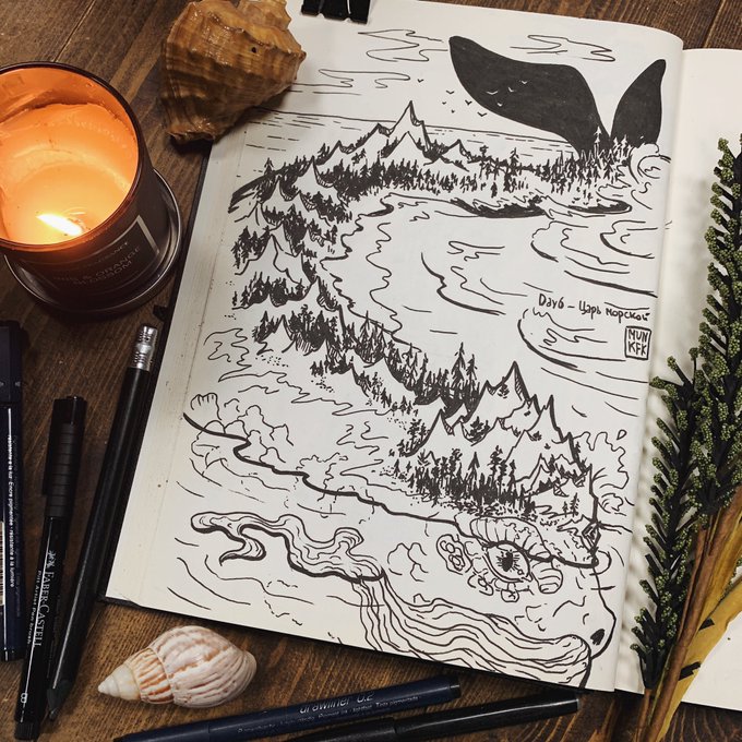 day 6 - sea tsar 🐚 (день 6 - царь морской) #slavicwitches_inktober #russianwitches_inktober #inktober #inktober2022 #inktoberday6 #ink #sea #myphology #traditionalart #art