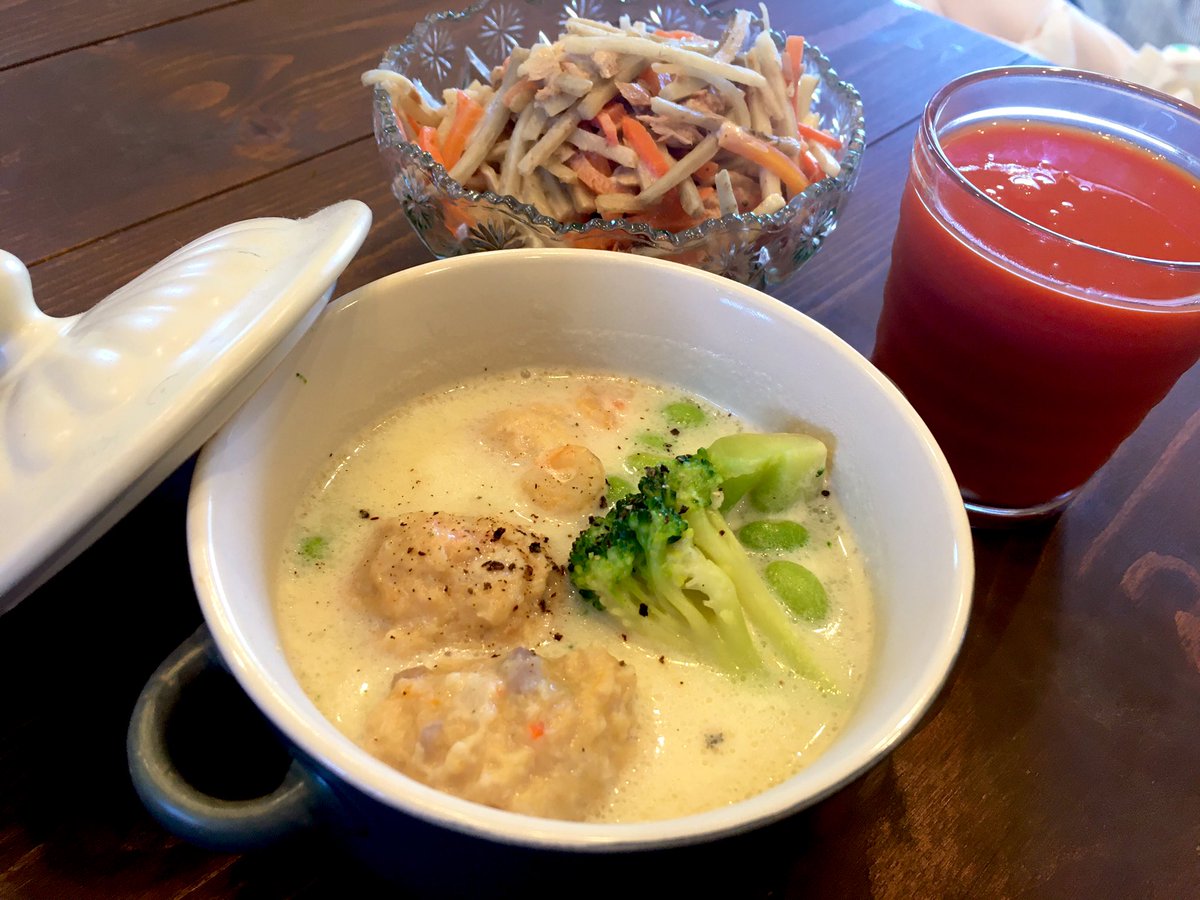 🦐自称シーフードヌードルのいとこ🤔✨ 適当に作った豆乳スープがアホのように美味しかったから!!!!ぜひ!!!!!作ってくれ!食ってくれ!!! ニンニクと生姜とシャンタンと豆乳は結束力が高すぎくんの旨すぎくん💪💪💪