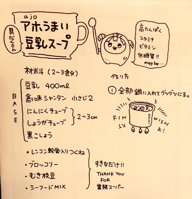 41 129 🦐自称シーフードヌードルのいとこ🤔✨ 適当に作った豆乳スープがアホのように美味しかったから!!!!ぜひ!!!!!作ってくれ!食ってくれ!!! ニンニクと生姜とシャンタンと豆乳は結束力が高すぎくんの旨すぎくん💪💪💪 20/07/31 13:58