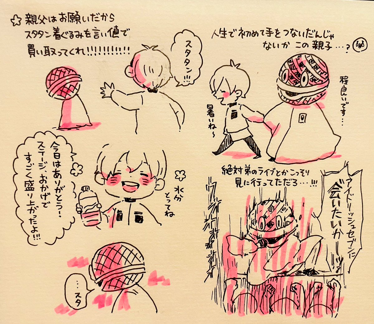 53 298 これは、はるか昔、そーちゃんが環くんと全然意思疎通ができていなかった頃、プリンの着ぐるみを着たらハマったという妄想を描いたものですが、まさか親がやってくれるとは思わないじゃない 22/08/31 22:04
