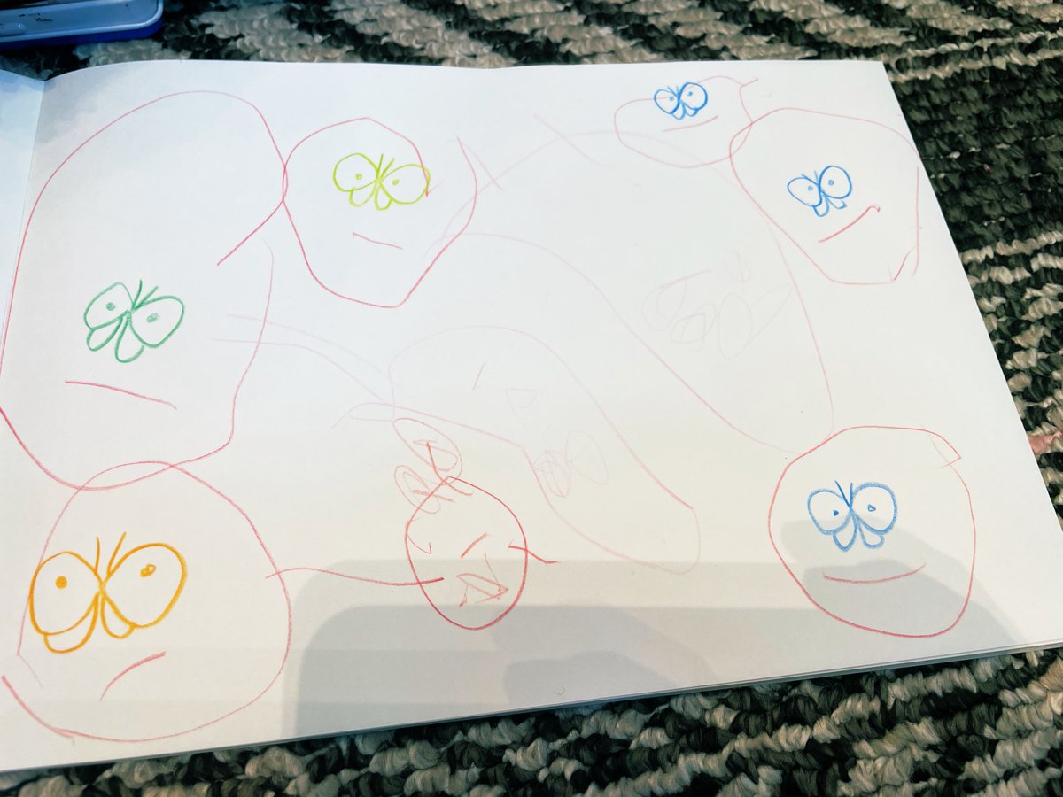 私が描いたチョウチョが2歳児によってすべてパピヨン仮面にされてしまった