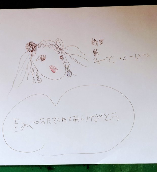 6歳の姪っ子が描いたレディ・クイーンの似顔絵😊 #こうもり美術館
