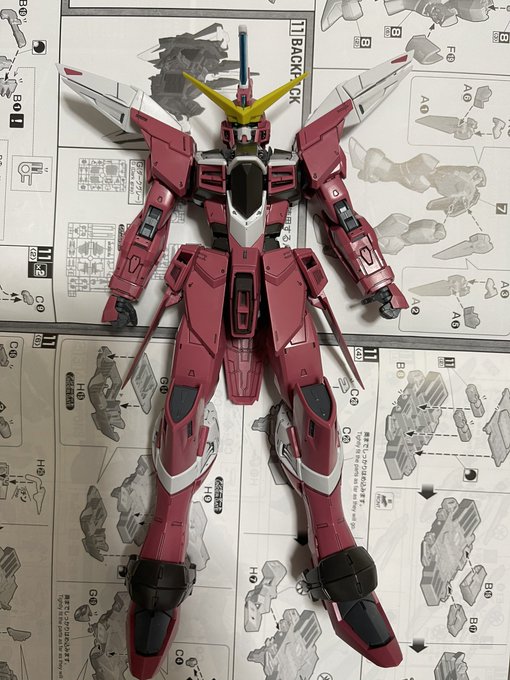 やっとMGジャスティス完成しましたー! めっちゃイケメンじゃないですかうちの子?w ストライク→フリーダム→ジャスティスと作ってきたんで次はなににしよっかなー?w #ガンプラ好きと繋がりたい #ガンプラ好き #ガンプラの画像貼るとRTされると聞いて #ガンプラは自由だ