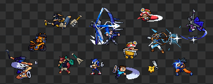 Oftentimes, limitations can give you a distinct style. #pixelart My rivals workshop characters almost always only had 2 shades per color, because roa's shader only lets you have 8 distinct colors for alts. And for a while this was a distinct part of my "style". 1/2 twitter.com/SovanJedi/stat…