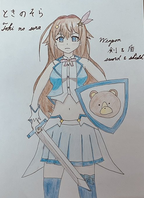 9月24日新しくホロライブのお絵描き始めました。 #全JPホロメンに武器を装備させる 1人目のお絵描きはときのそらちゃん。 武器は剣と盾。ホロライブの主人公に相応しい武器と思います。 色塗りに関してはど素人なのでコレから色々試行錯誤出来ればと思います。 #soraArt