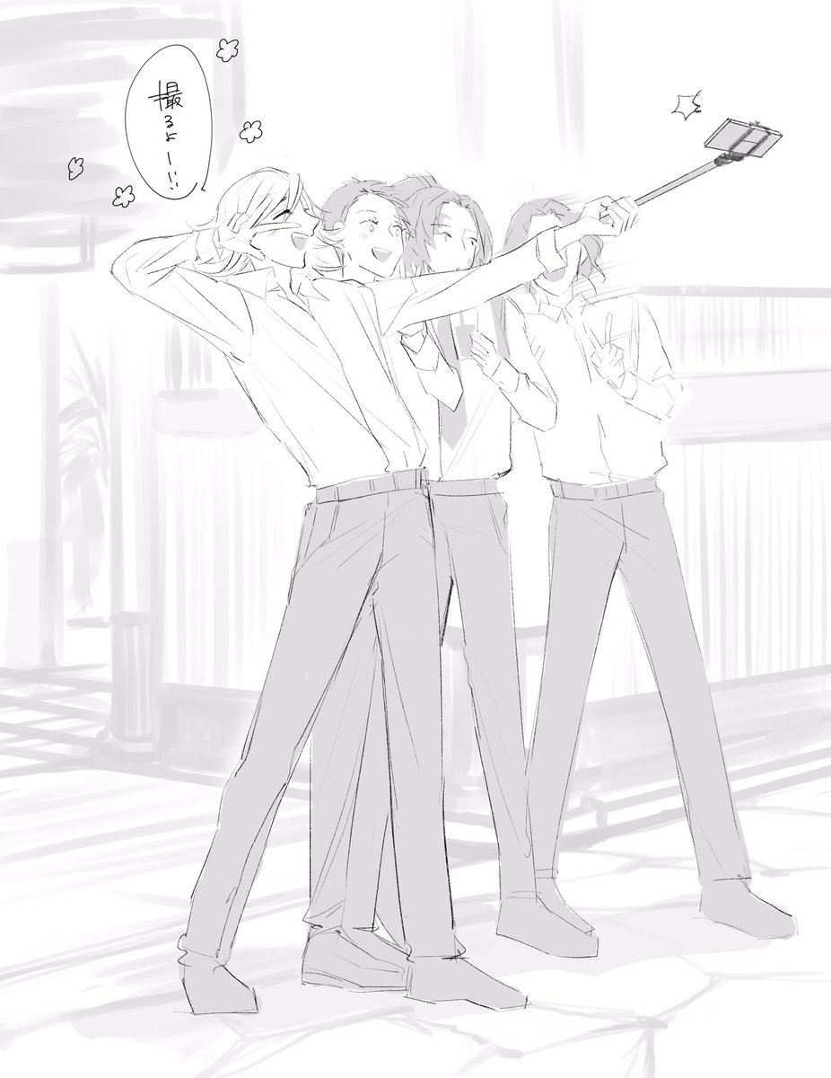 この4人で修学旅行に行って欲しいな〜😌という絵