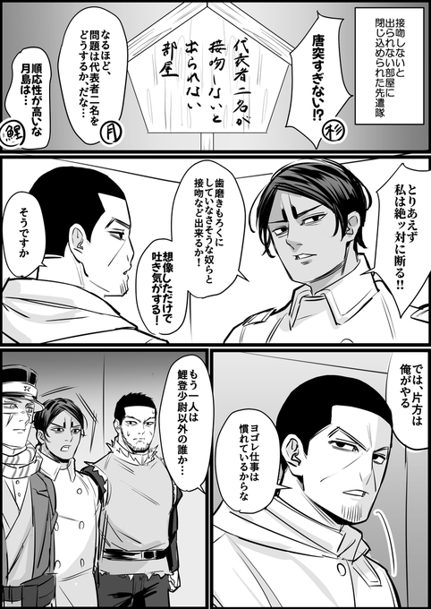 634 4641 樺太先遣隊で『キスしないと出られない部屋』 ※ギャグです ※男同士でキスしたりしなかったりしてますが、カップリングの意図はありません ※月鯉両片思い風味 22/06/25 07:00