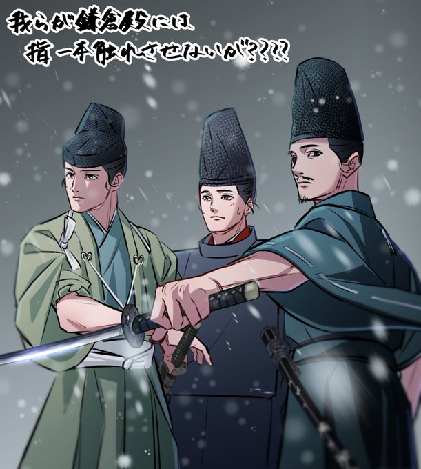 北条親子は速やかに和解して、二人で雪の日の実朝を護衛してほしい。目力強めで。 #鎌倉殿の13人 #鎌倉絵 #殿絵