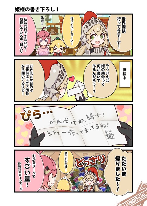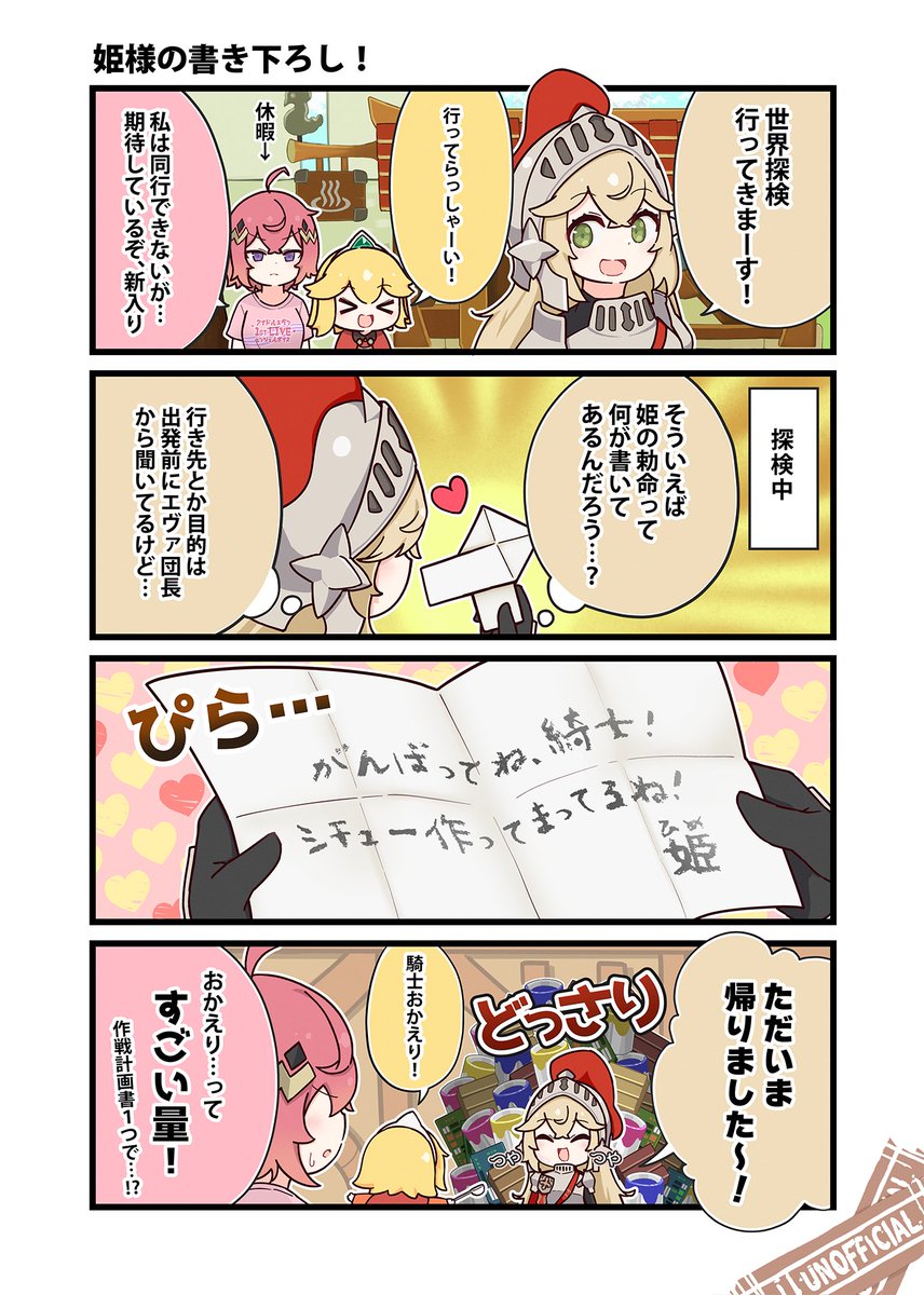 【ふぁんたべりーでぃんぐ!】 二次創作4コマ漫画『ふぁんたべりーでぃんぐ!』の第2話「リナが欲しい!①」を公開! リナが引けない騎士ちゃんのお話。②は来週! #ガーディアンテイルズ #ガデテル #画デテル