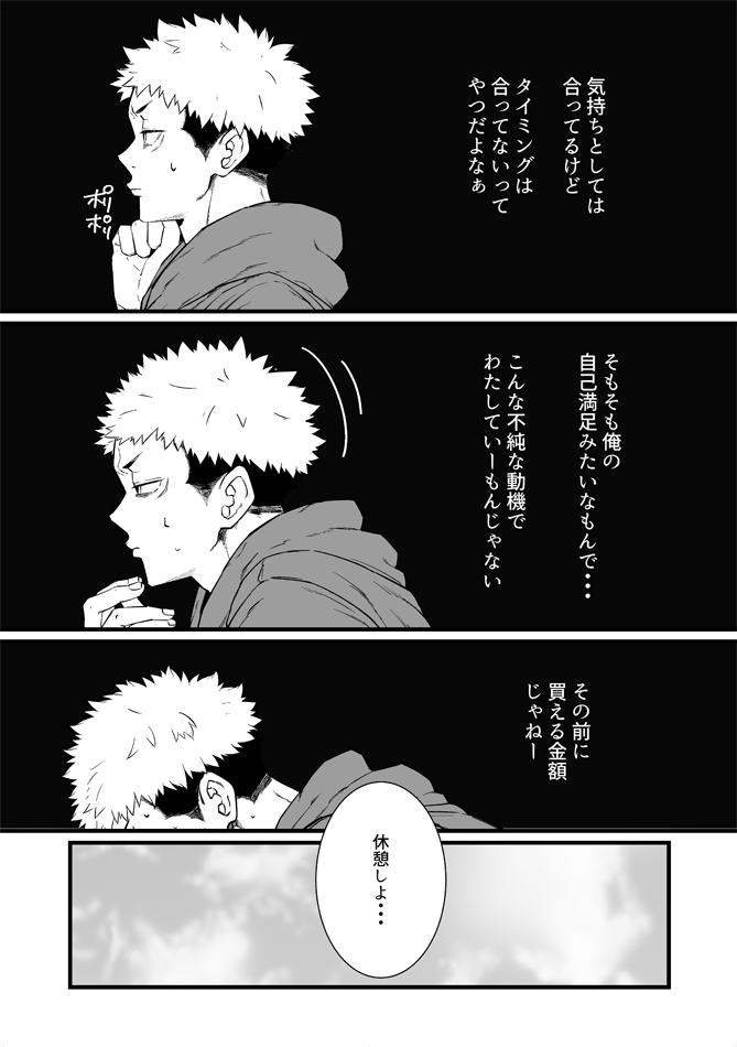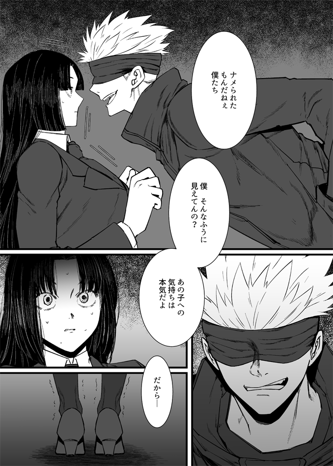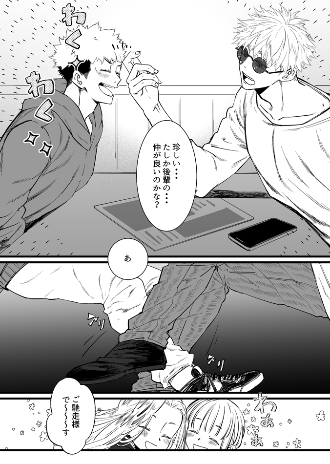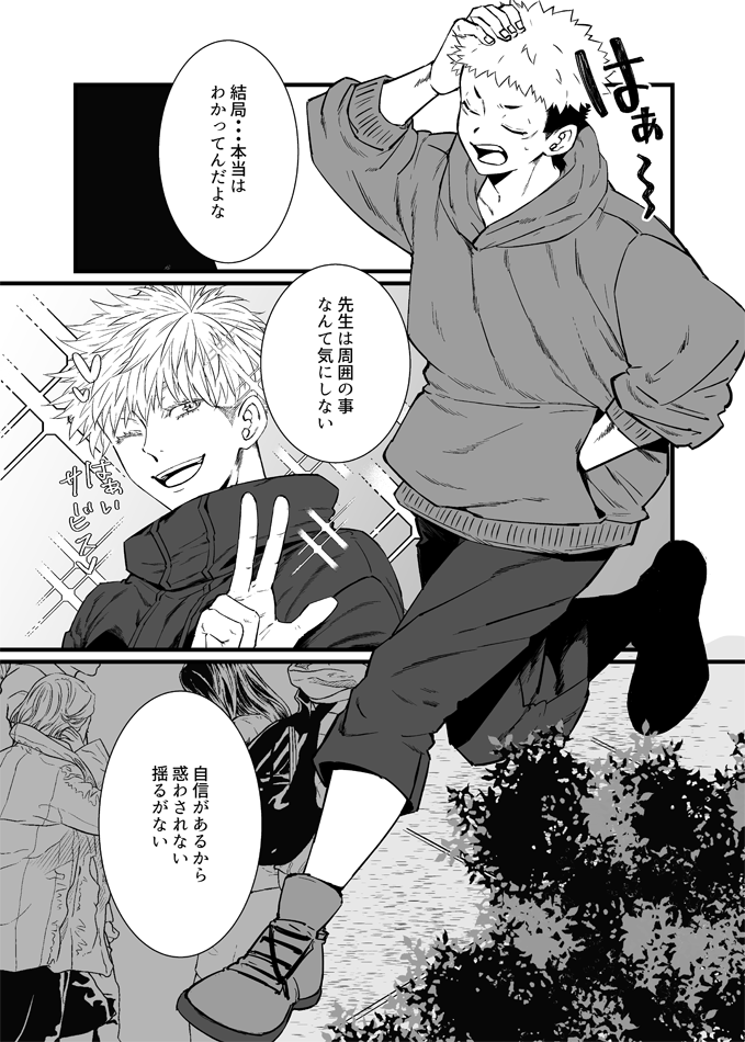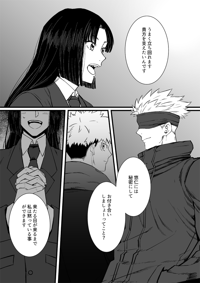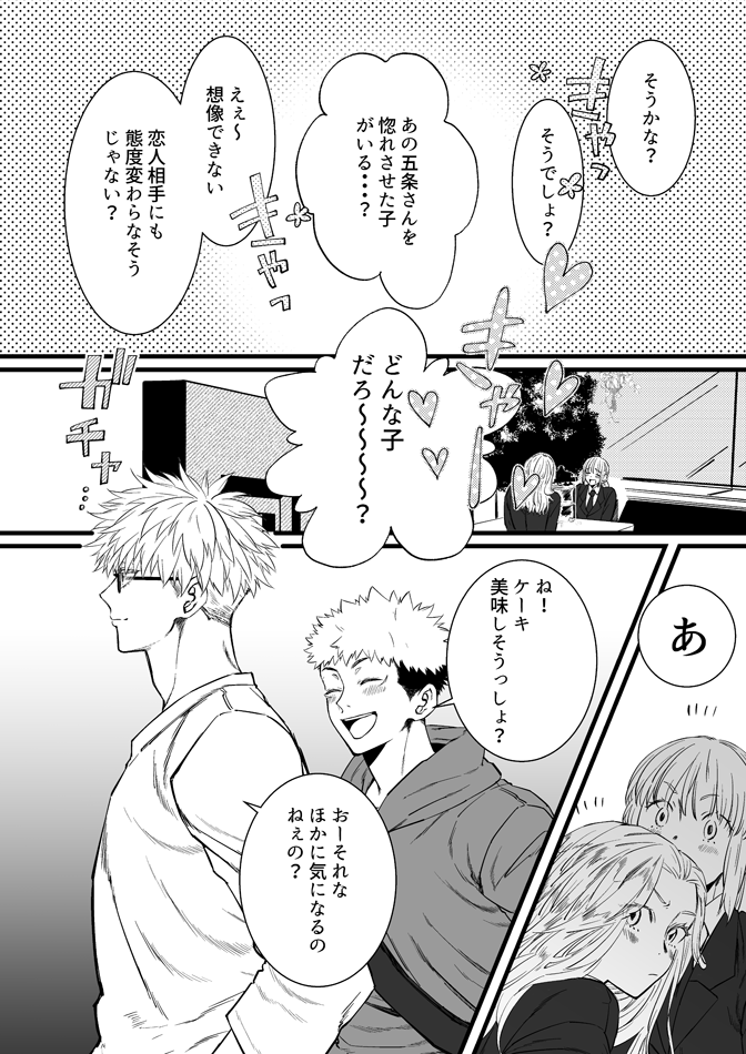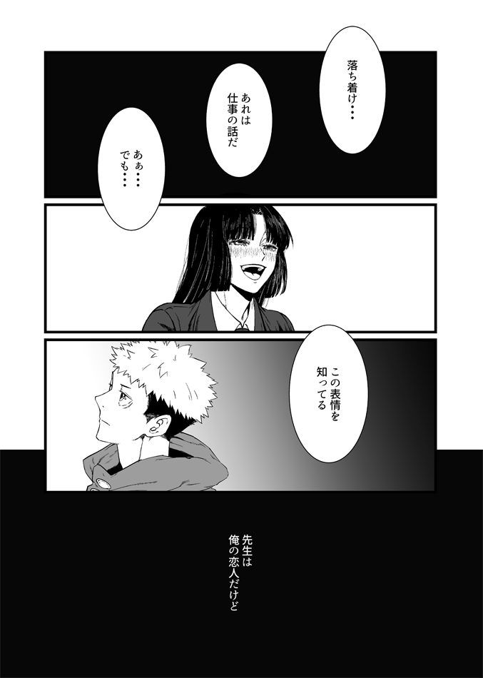 嫉妬をテーマに五悠の続きです。モブが出張りますので、苦手な人注意です。今回8Pでいつもより少なめですが、ここで一旦区切るのが良いかな〜と思ってこうなりました。個人的には五先生にこういう事ができる人って業界内でも極僅かな気がします。 twitter.com/murakumox/stat…
