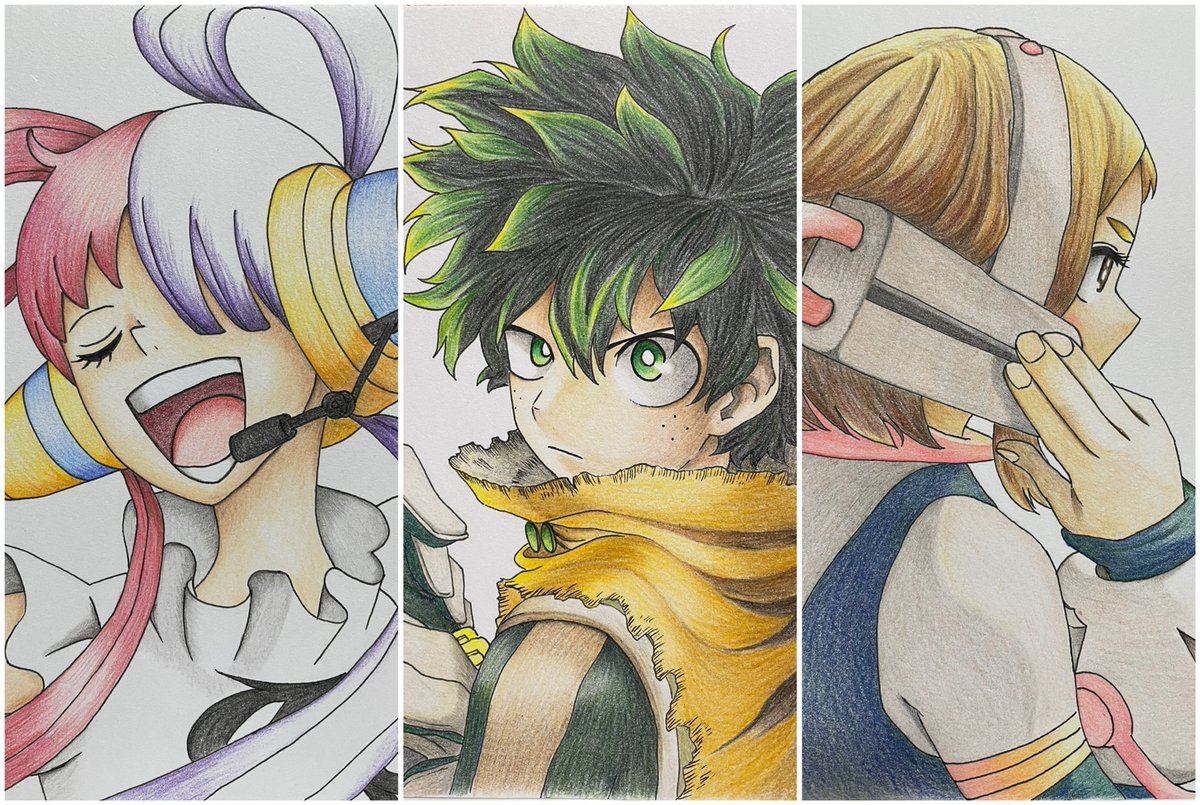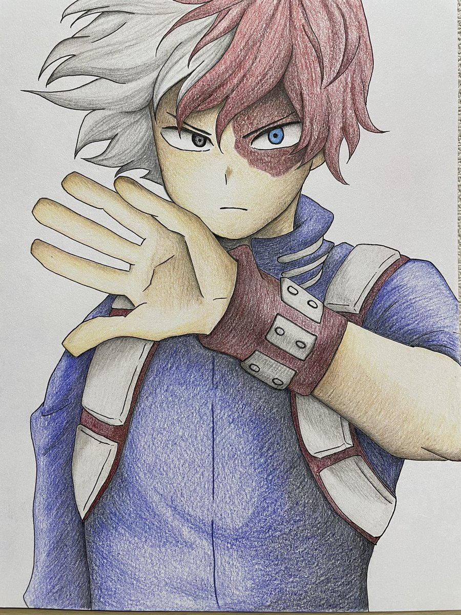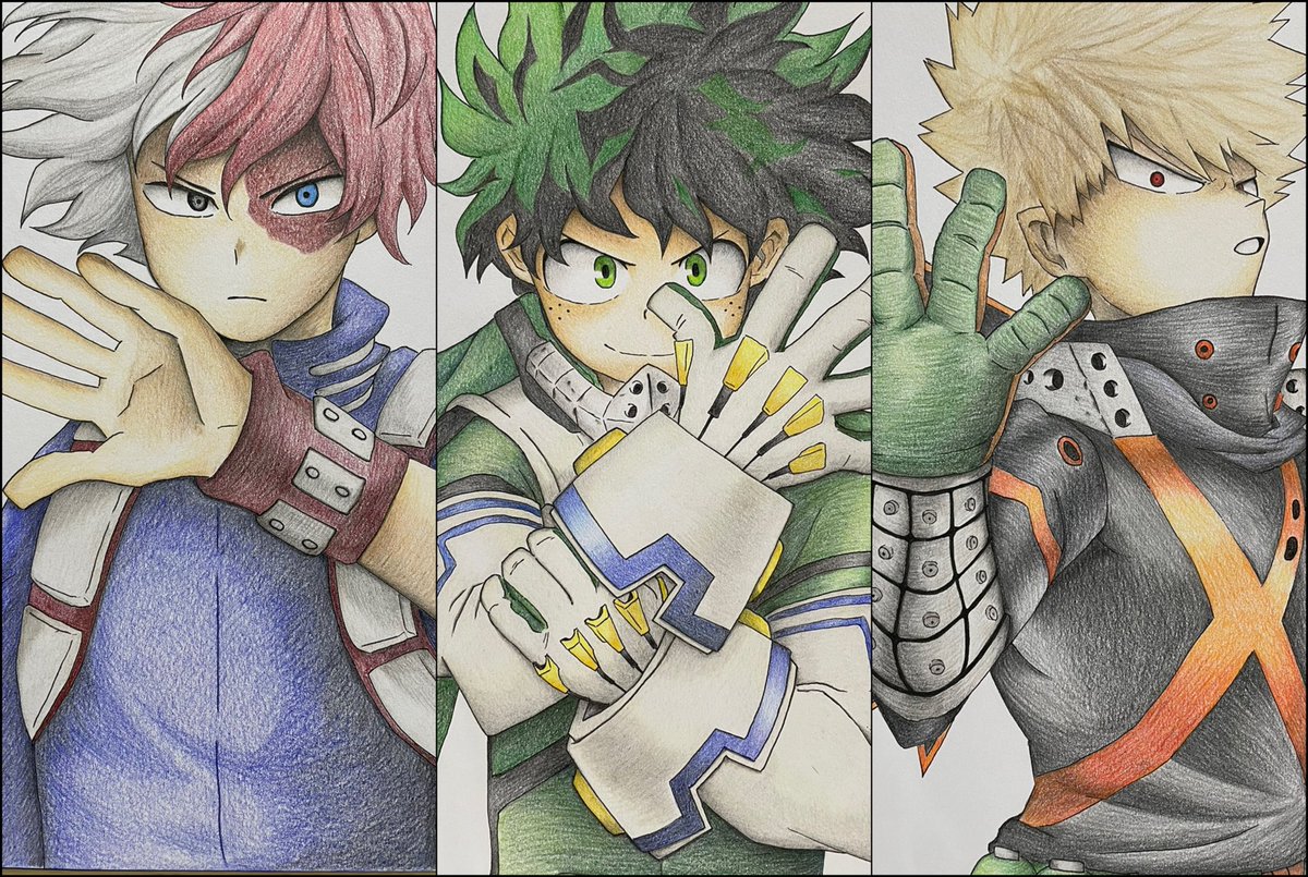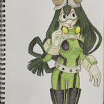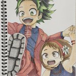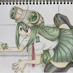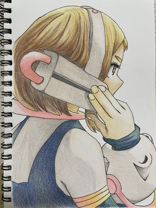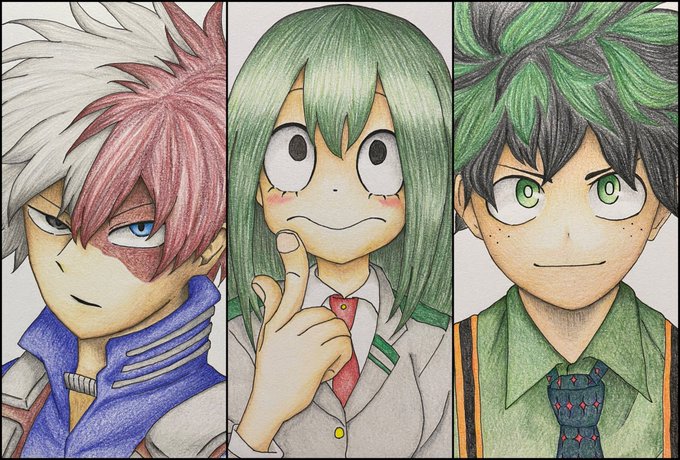 梅雨ちゃんとバクドッグ 元絵の梅雨ちゃん下向いてるけど何見てるのかな〜って想像して勝手にバクドッグを配置 梅雨ちゃんのヒロス 元絵が赤だったのでそのまま赤で塗ったけど赤は難しかったです… #僕のヒーローアカデミア #模写 #色鉛筆