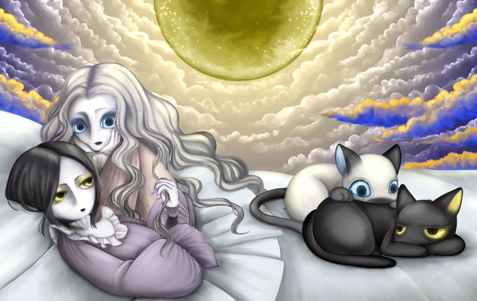楽しい夢 #illustration #イラスト #絵 #art #創作 #絵描きさんと繋がりたい #絵柄が好みって人にフォローされたい #少女 #創作クラスタさんと繋がりたい 世界一愛しているうちの猫たちです可愛いねえ