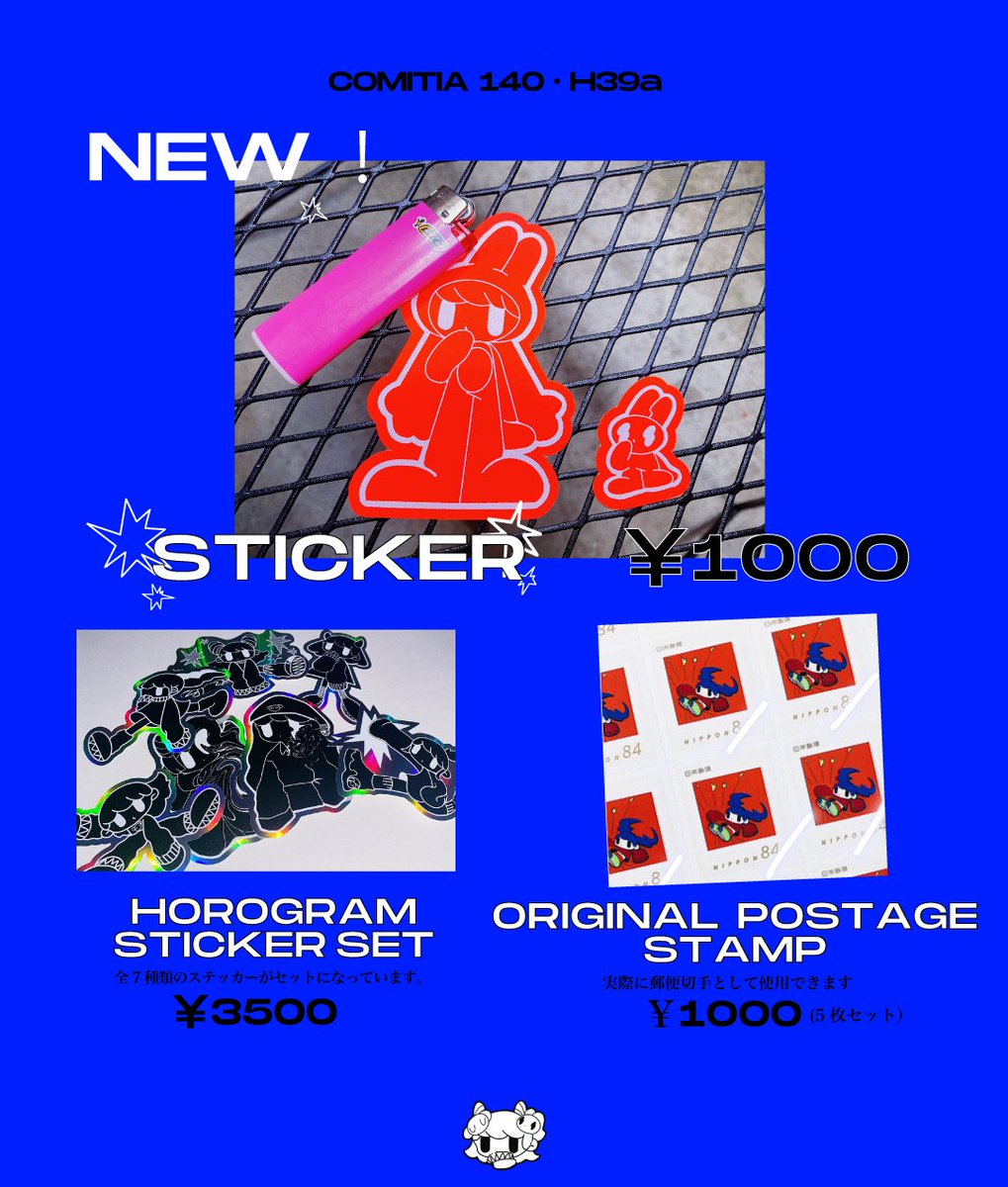 GW おしらせそのさん!🫡 5/5 #COMITIA140 でます〜 New✴︎STICKERの他にも 個展で売り切れてしまったステッカー (今回は特別に全部セットにしました)、 オリジナル切手がゲットできます✴︎ 𝐇𝟑𝟗𝐚 にてお待ちしております!