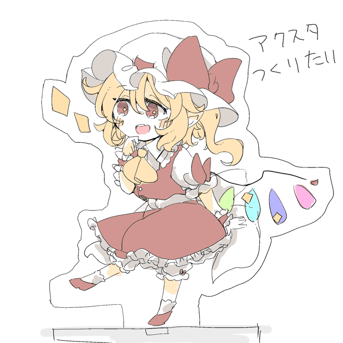例大祭20のおしながきです。 新作はフラまり本とフランちゃんのアクスタがでます。 また、紅楼夢18にて頒布してないなった本の増刷をかけましたので、トートバック、アクスタと一緒に持っていきます。ご興味があった方はどうぞよしなにお願いします。 スペース【え26a】星色ざらめ #例大祭 #例大祭20