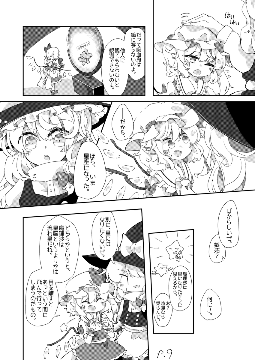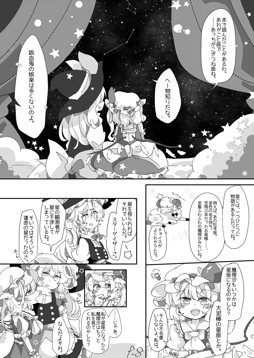 22 68 「籠の中の流れ星」B5/本文P/400円 サンプル 紅楼夢18で頒布した本も再発行したので持っていきます。 魔理沙はお星さま。 そんな魔理沙を手に入れたくて、過激な行動を取ってしまうフランドール。 こっちは甘くないフラまりです。 23/05/02 00:44