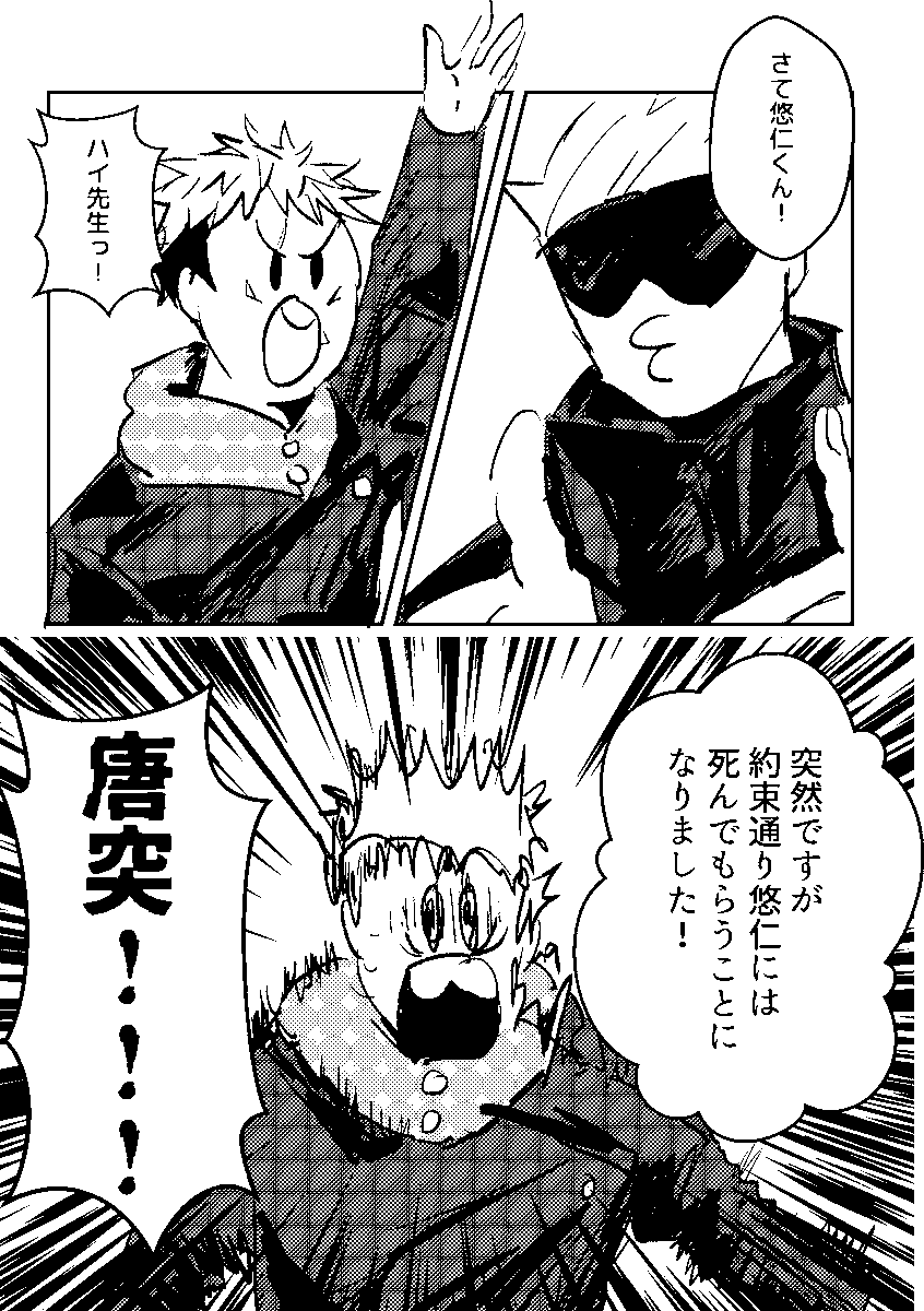 7/23頒布予定の新刊サンプルです! 「カタストロフの葬送」 A5/54p/全年齢/500円(会場頒布価格) 虎杖くんが死刑執行されるお話を描いた短編集。収録CPは【五悠/めぐゆじ/夏虎/宿虎】です ※死ネタしかない ※流血・暴力表現アリ